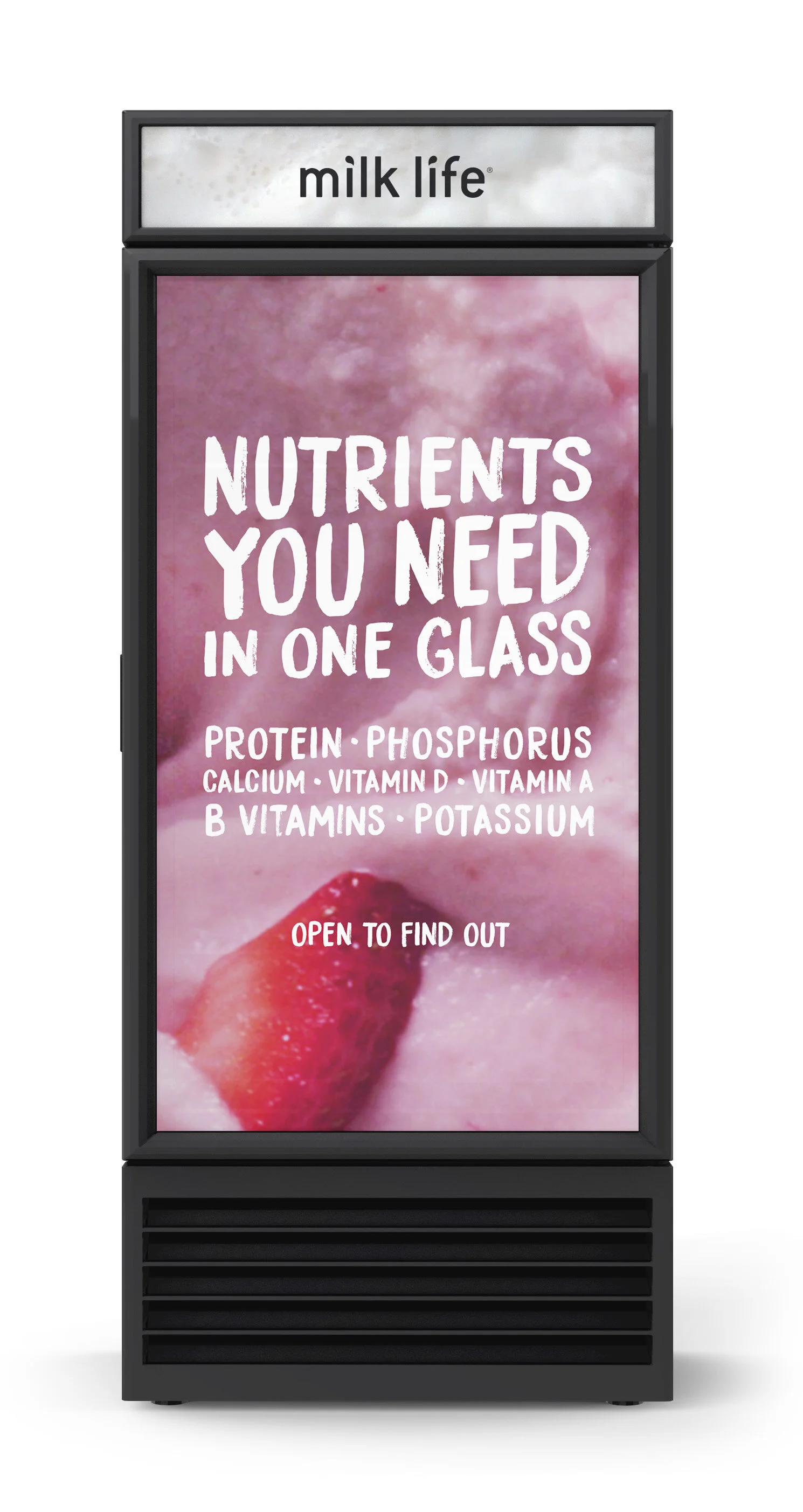 Still think you know everything about milk? Using new retail technology, interactive in-store display coolers were designed that kept consumers guessing. We had 996,843 retail impressions, 15,301 cooler engagements, and shoppers spent an average of 30+ seconds engaging with the coolers.